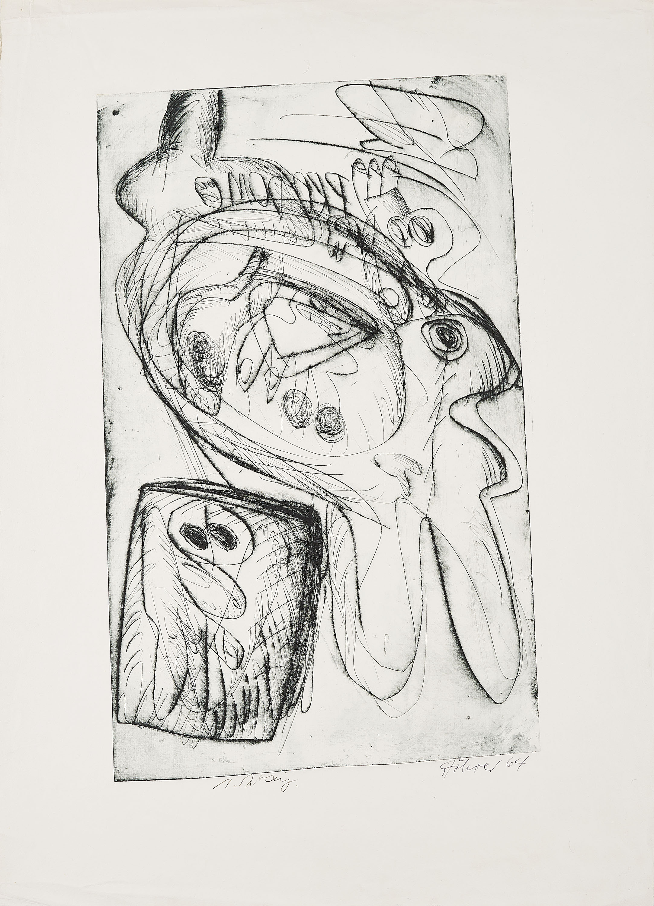 a) Ohne Titel. 1964. Radierung auf Velin. 52 x 39cm (62 x 50cm). Signiert, datiert und