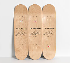 Technik: Farboffset auf 3 Skateboard-Decks aus kanadischem Ahorn. Mit Wandaufhängung und Tragetasche.