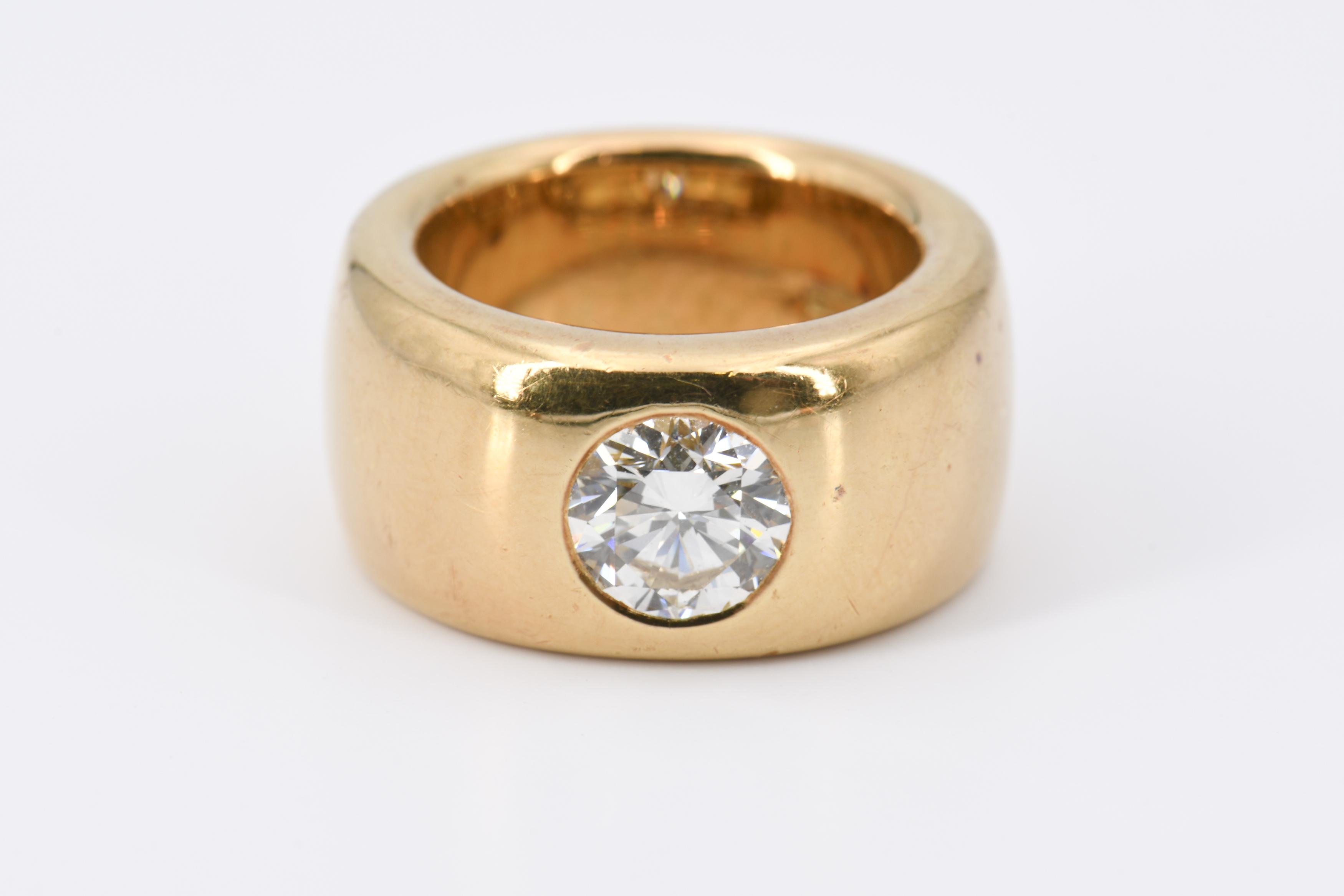 Diamanten: 1 Diamant im Alt-Schliff ca. 1,5 ct. I-J/VS1, soweit im gefassten Zustand feststellbar.
