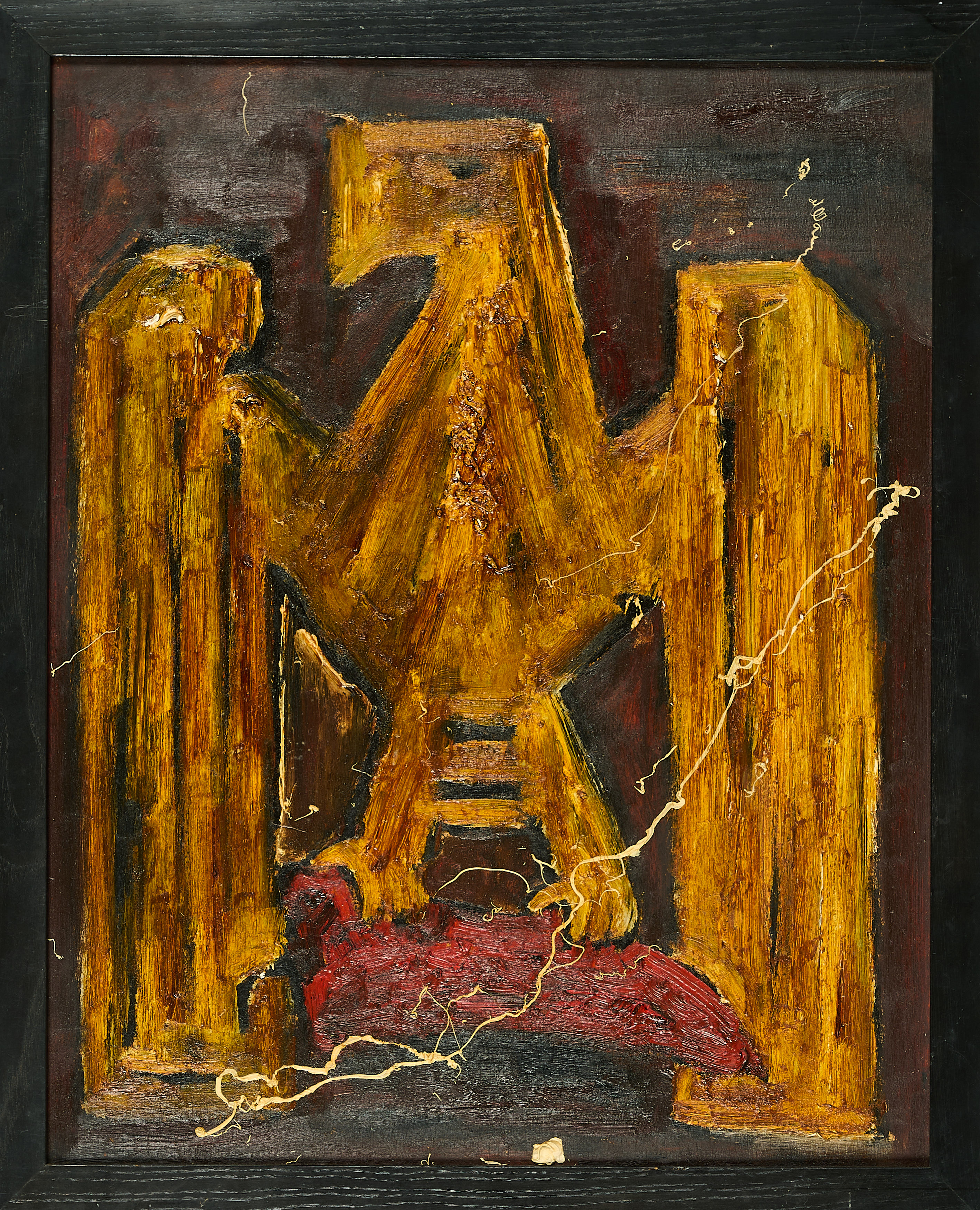 Minimal verschmutzte Malfläche. Verso Arbeitsspuren. Ansonsten sehr guter Zustand. Das Werk wurde für die Katalogbeschreibung nicht ausgerahmt.