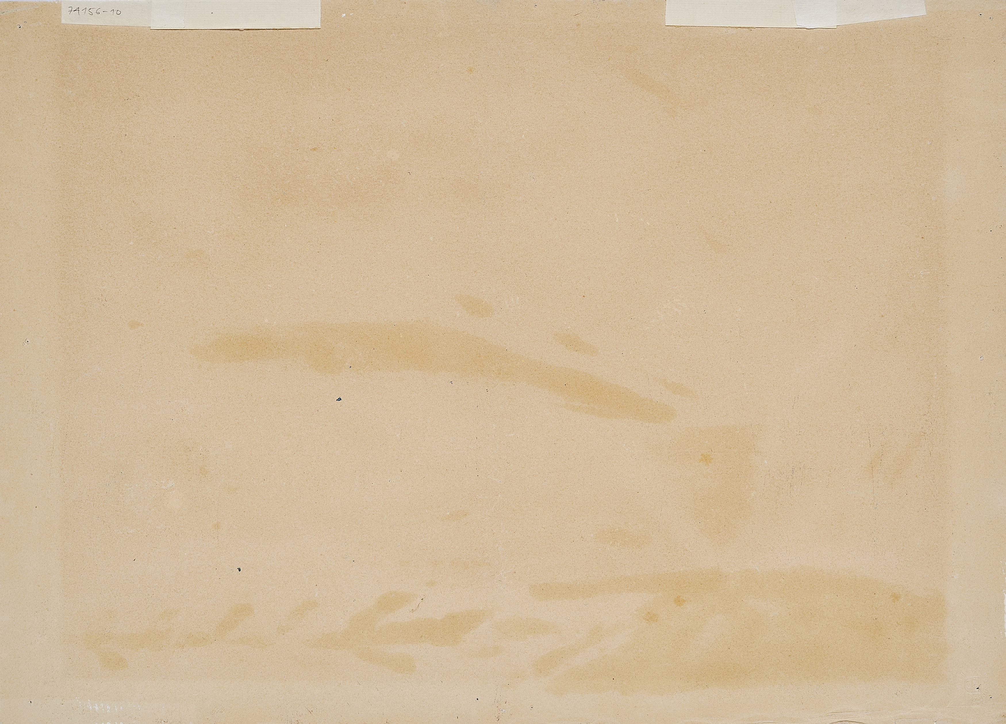 Stecknadellöcher in den Randbereichen. Minimale Bestoßungen mit minimalen Einrissen in den Randbereichen, vor allem am unteren linken Rand (Einrisse ca. 0,4cm). Verso Reste alter Montierung sowie minimal unregelmäßig gebräunt und minimal verschmutzt. Ansonsten sehr guter Zustand.