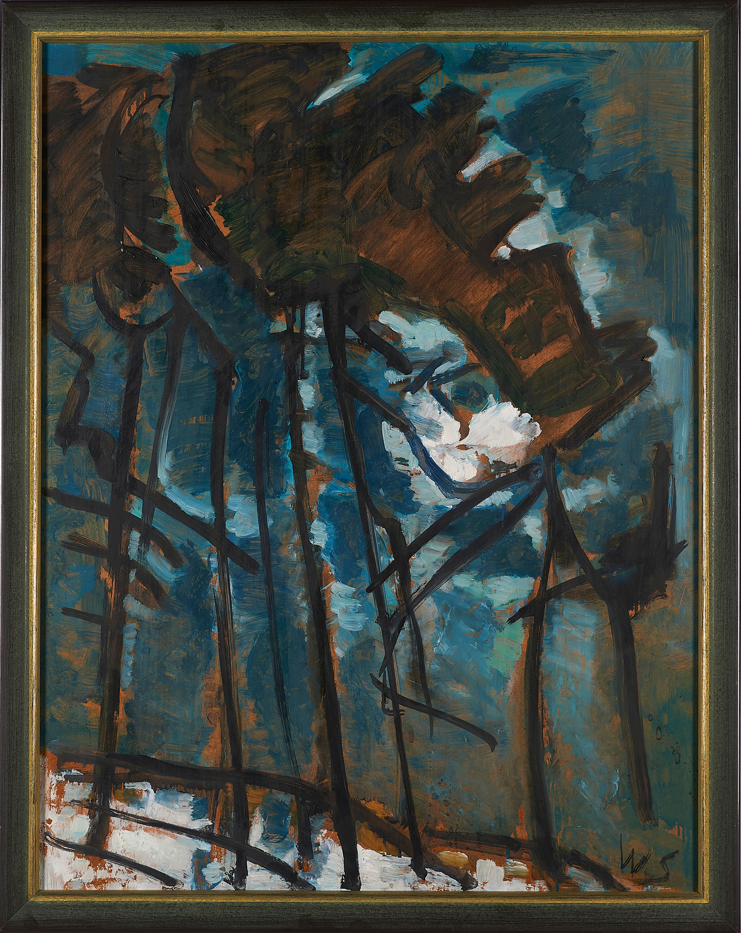 Minimales Krakelee. Leichte Spritzer über das Bild verteilt (werkimmanent?). Ansonsten sehr guter Zustand. Im Rahmen beschrieben.