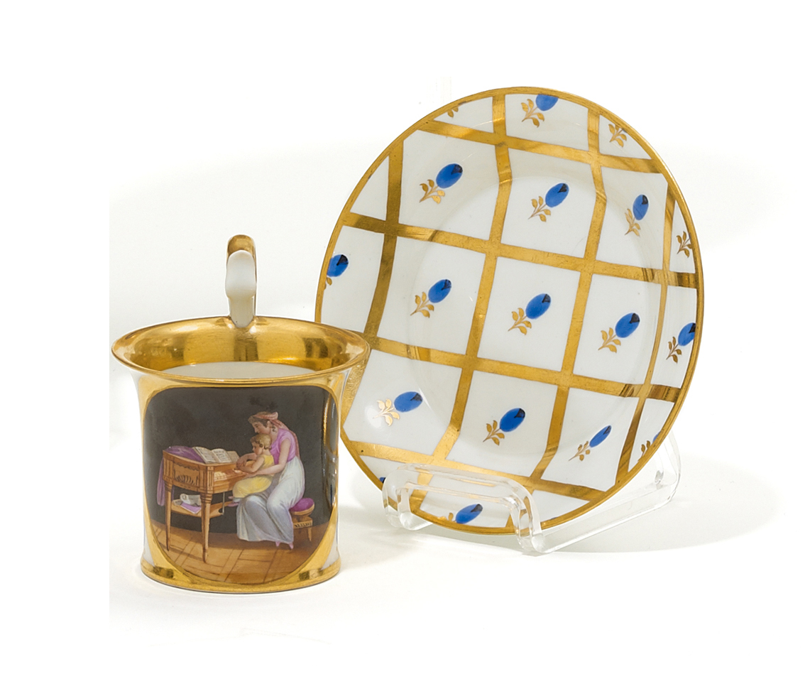 TASSE MIT MUTTER UND KIND AM KLAVIER UND UNTERTASSE