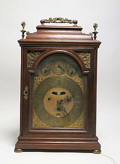 Beschreibung: Tagesläuferwerk mit Vierviertelschlag auf zwei Glocken, Repetition, Datums-und