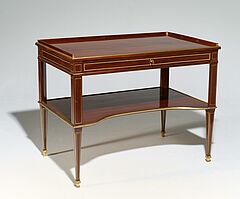 Technik: Mahagoni auf Eiche, Nadelholz und Linde furniert, tlw. mit Kirschbaum gegenfurniert. Vergoldete Messingbeschläge.