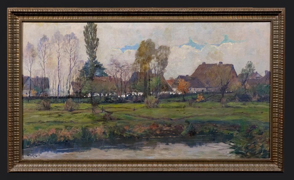 Dorf in der Nähe von Paderborn. Signiert und datiert unten links: W. Lucas. 11. Öl auf Leinwand. 103 x 183cm. Rahmen.