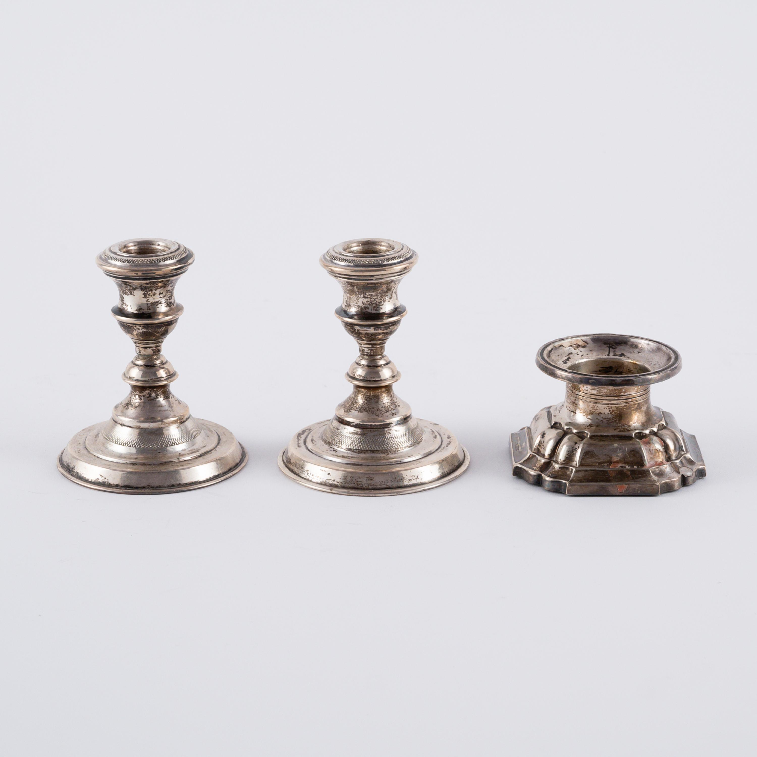 Halbmond & Krone, Feingehalt 800, MZ. Zustand A/B. Beilage: Drei kleine Leuchter, gefüllt.
