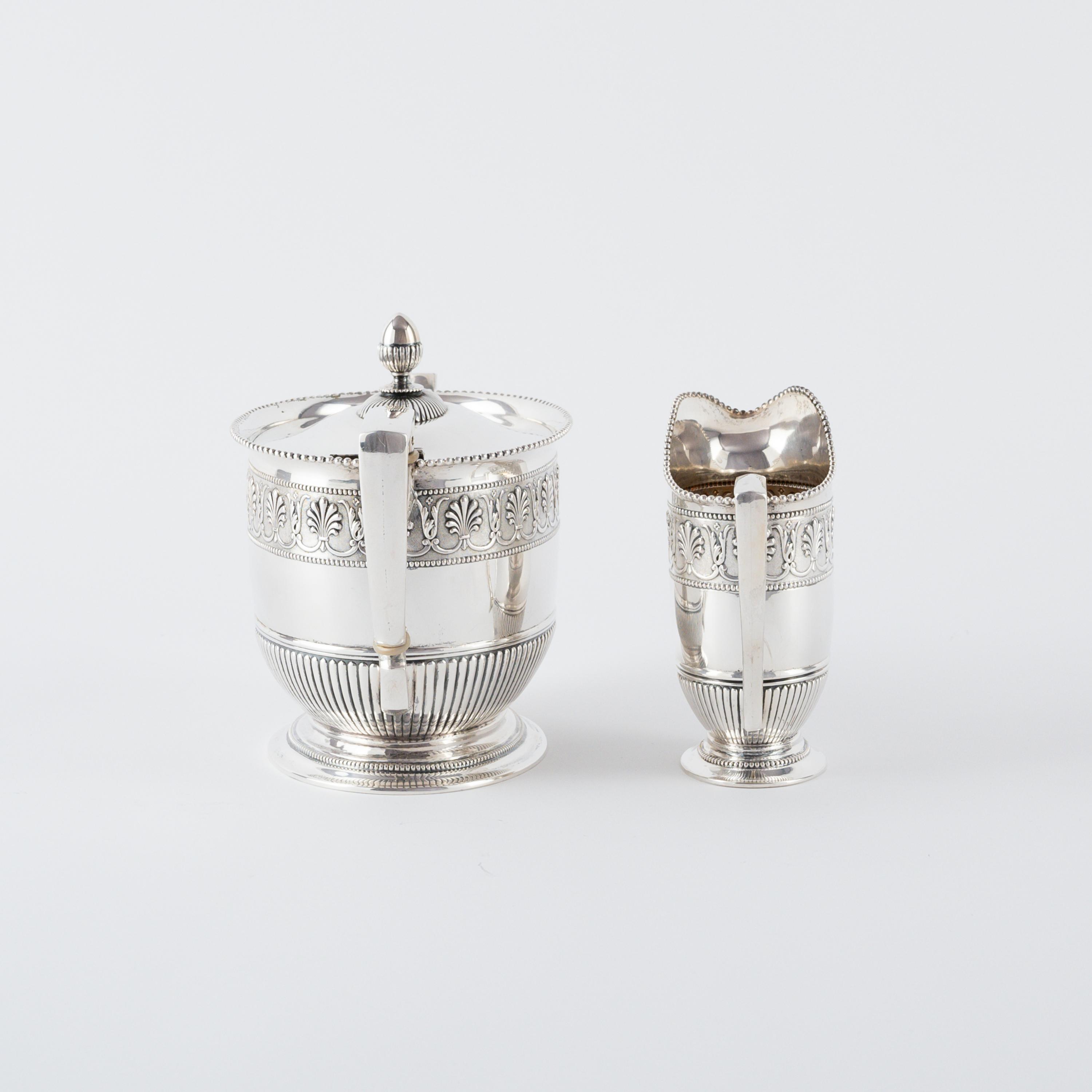 VIERTEILIGES KAFFEE- UND TEESERVICE MIT PALMETTEN UND PERLFRIES.