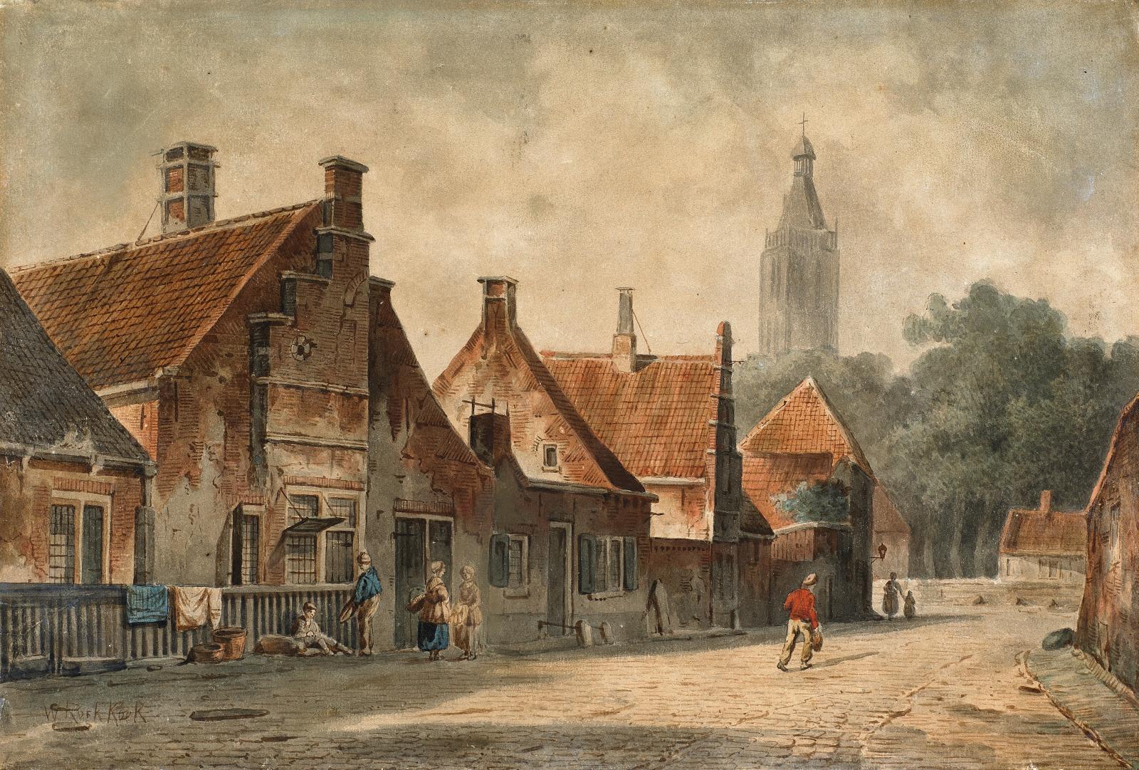 Dorfstraße. Aquarell auf Velin. Auf Japanpapier kaschiert. 27 x 39,5cm. Signiert unten links: W. Koekkoek. Rahmen.