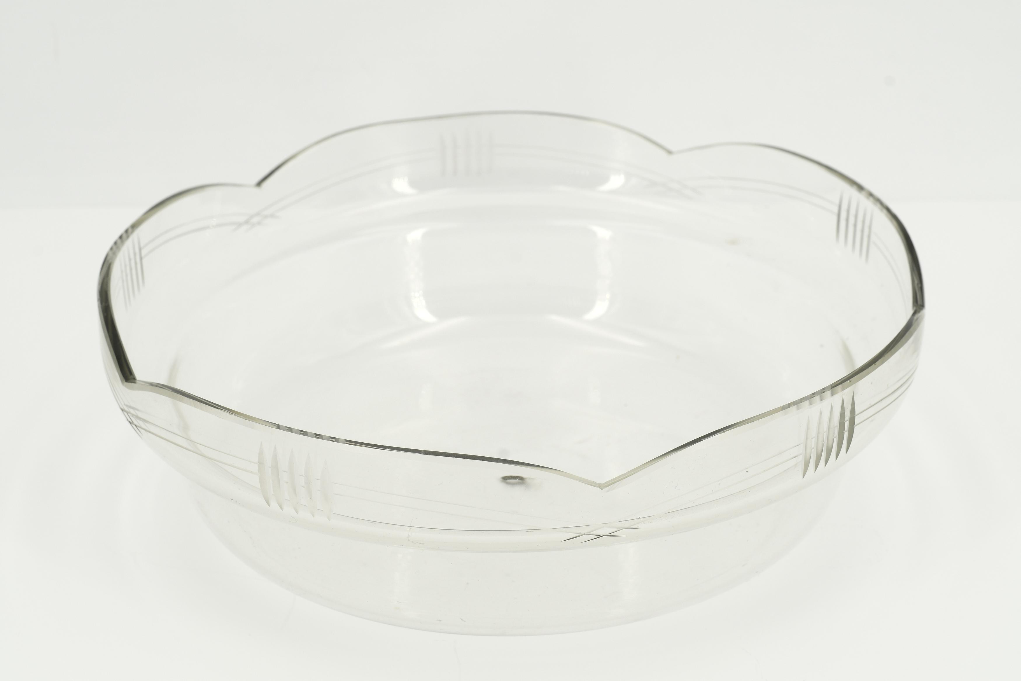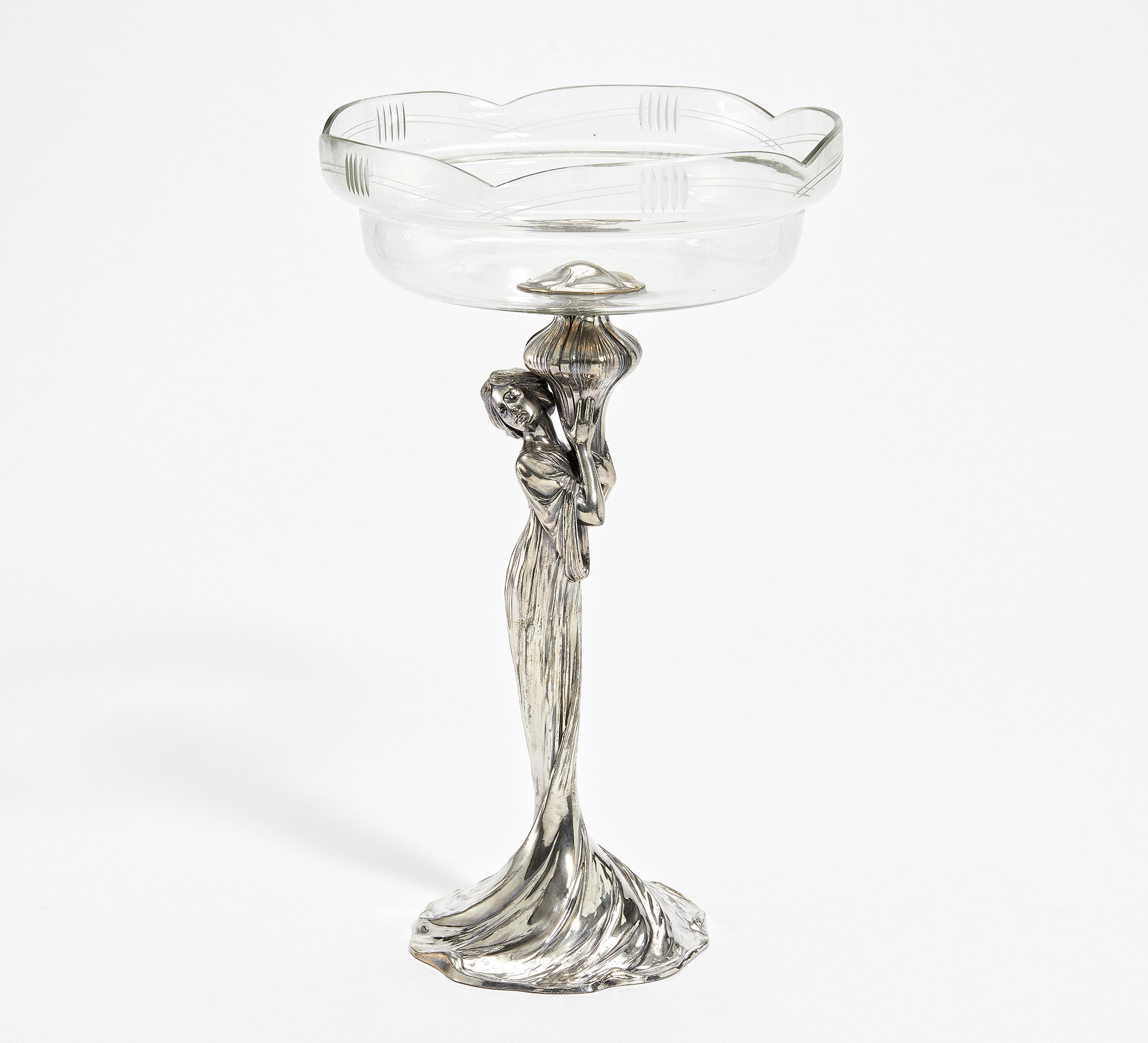 Material: Metall, versilbert. Farbloses Glas mit Schnitt- und Schliffdekor.