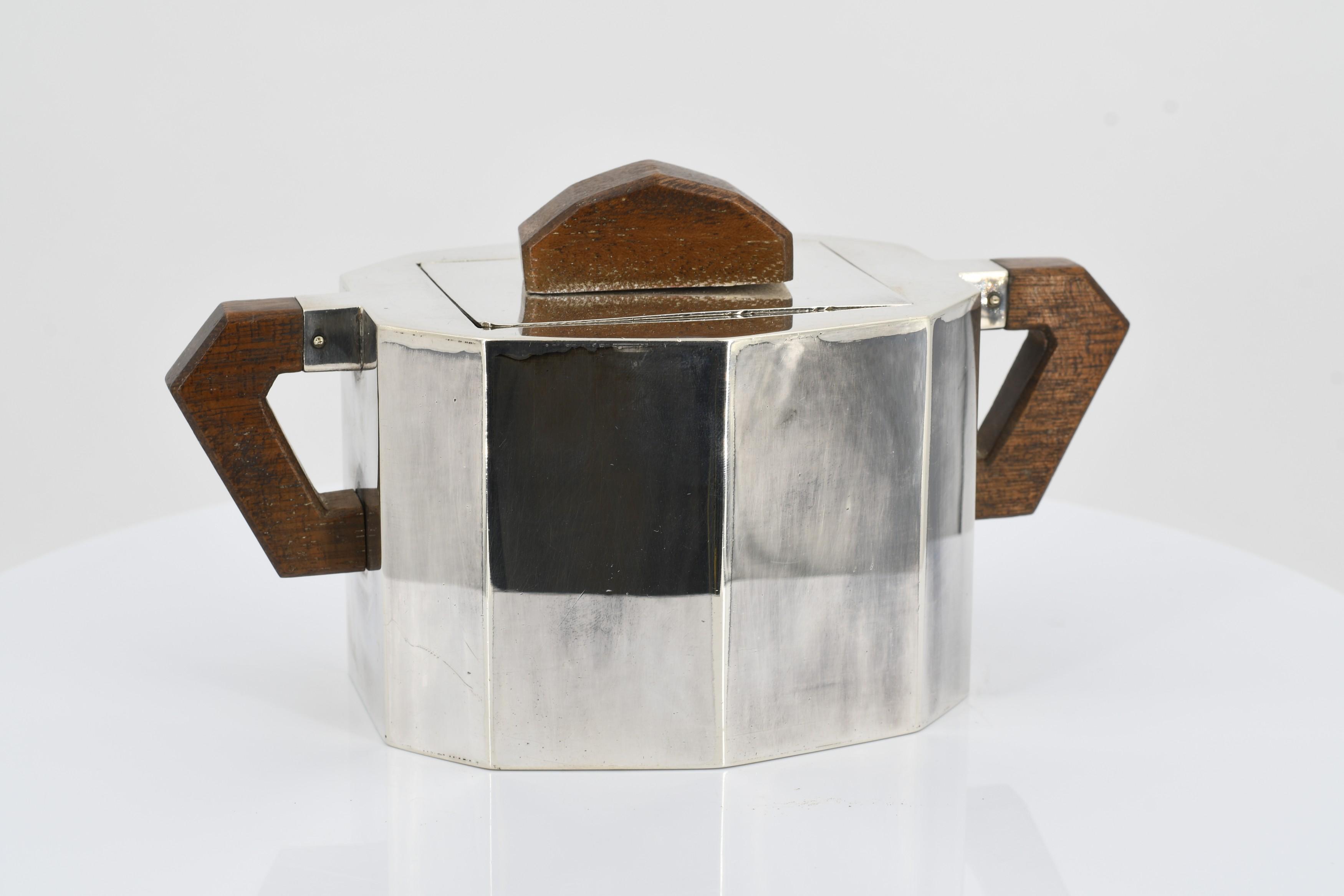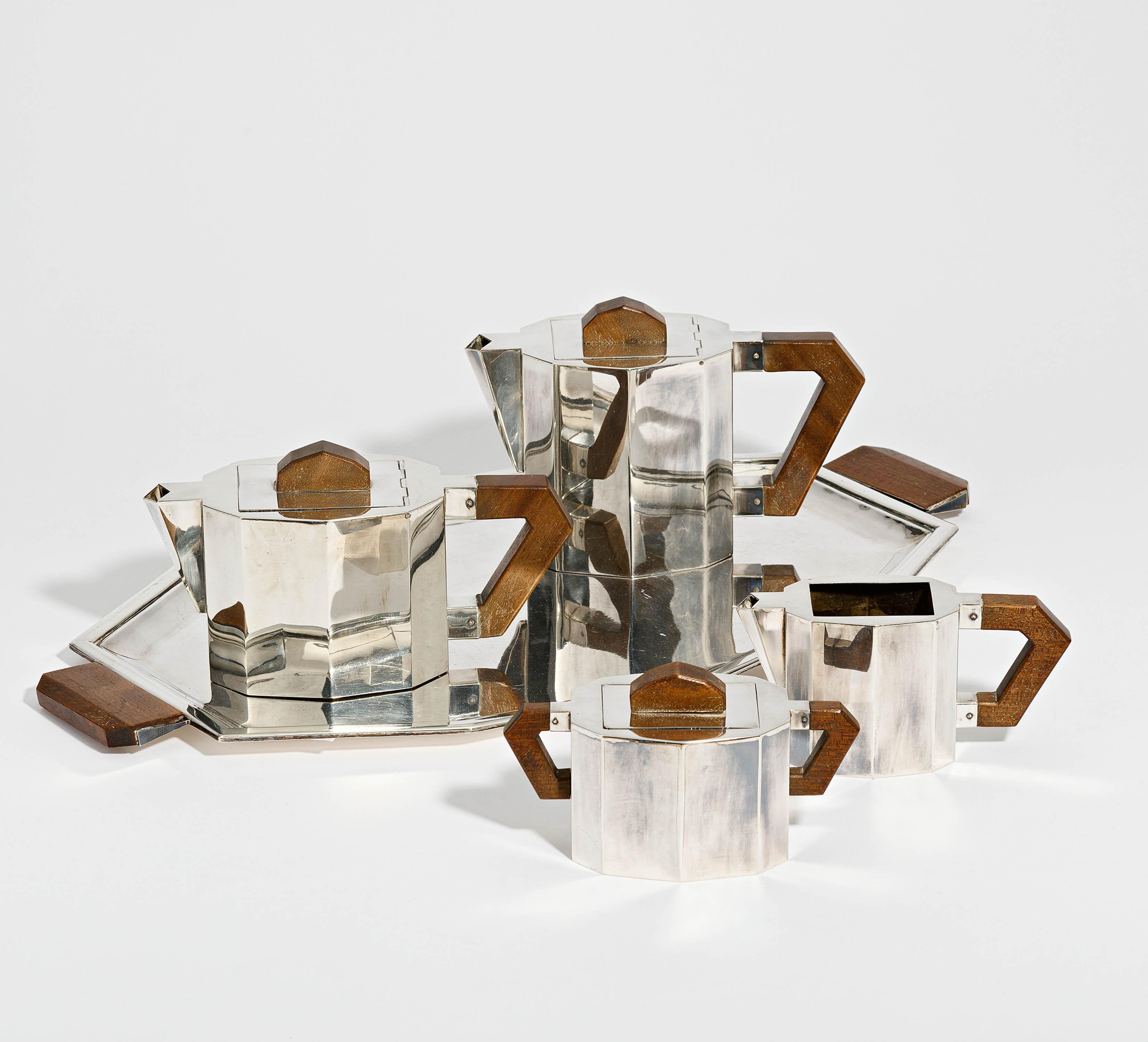 FÜNFTEILIGES ART DECO KAFFEE- UND TEESERVICE MIT FACETTIERTEM KORPUS.