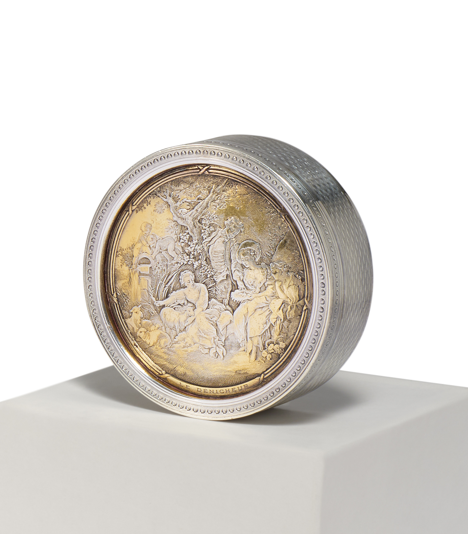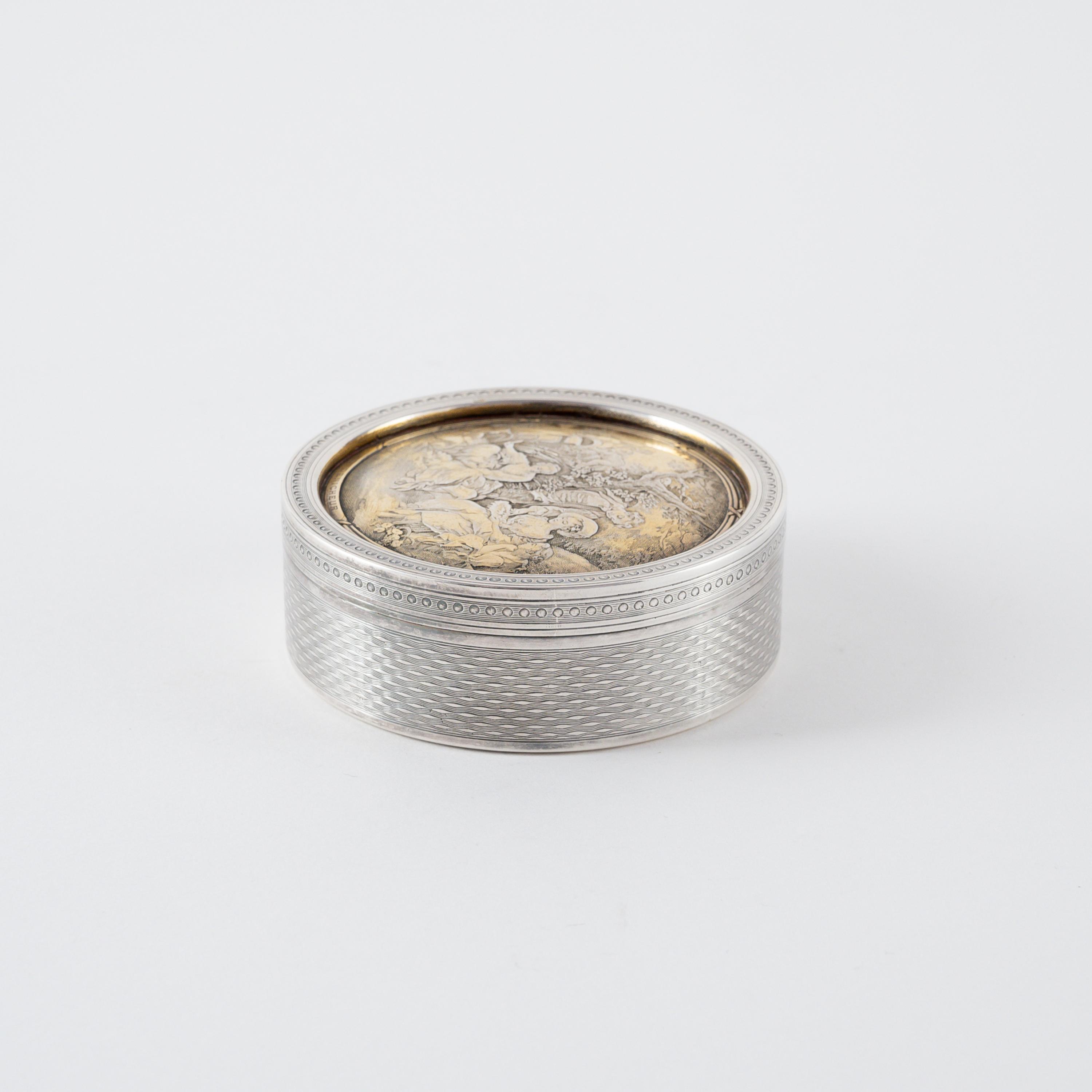 RUNDE DOSE MIT GALANTER SCHÄFERIDYLLE "LE DÉNICHEUR".