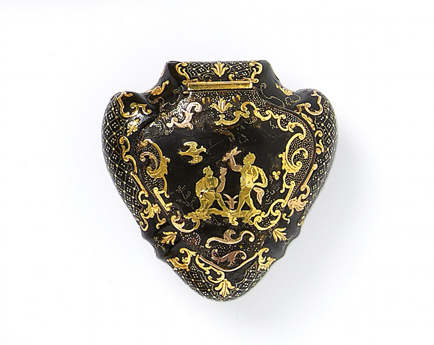 HERZFÖRMIGE TABATIERE MIT GOLDPIQUÉ.
