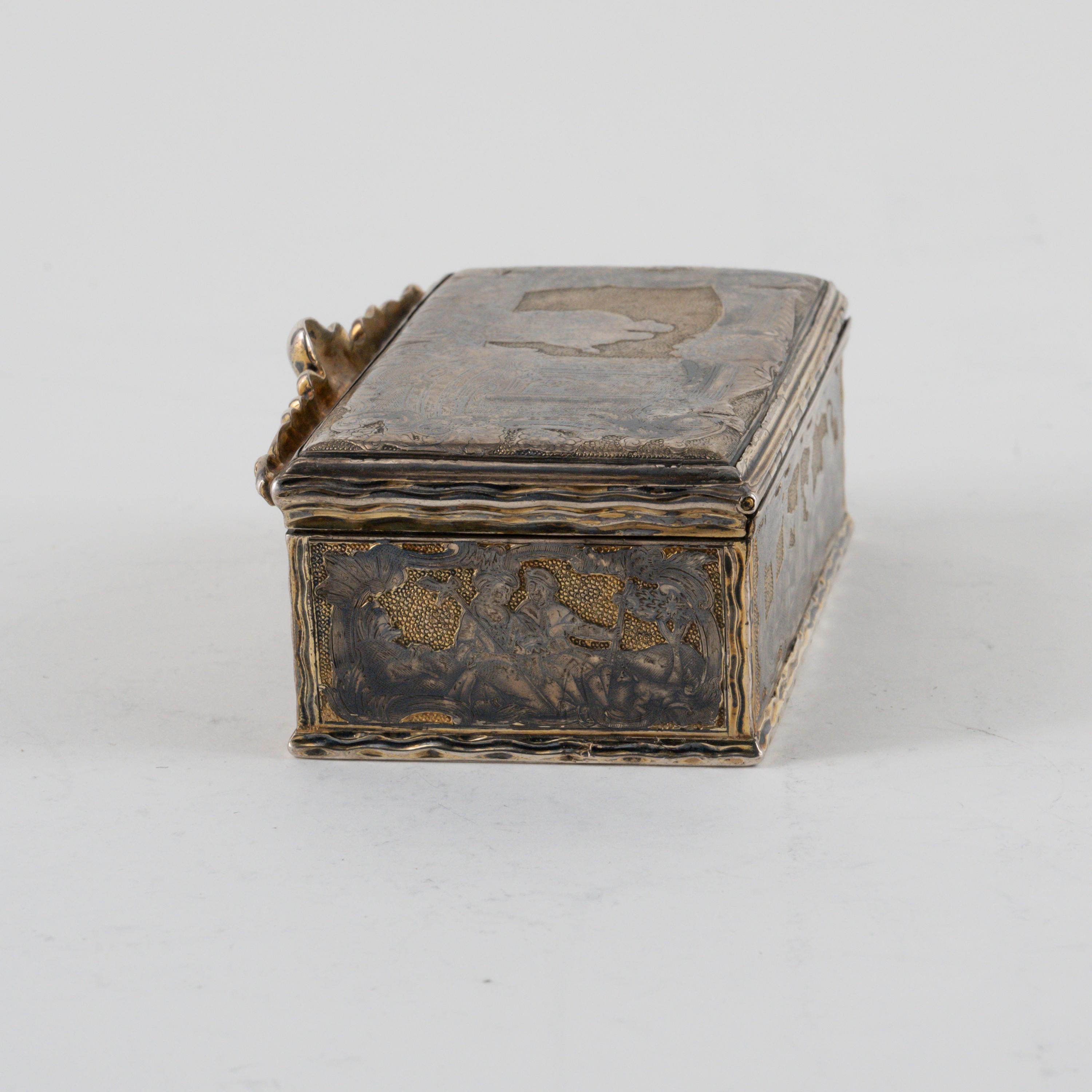 TABATIERE MIT MYTHOLOGISCHER SZENE & IDYLLISCHEN LANDSCHAFTEN MIT PAAREN.