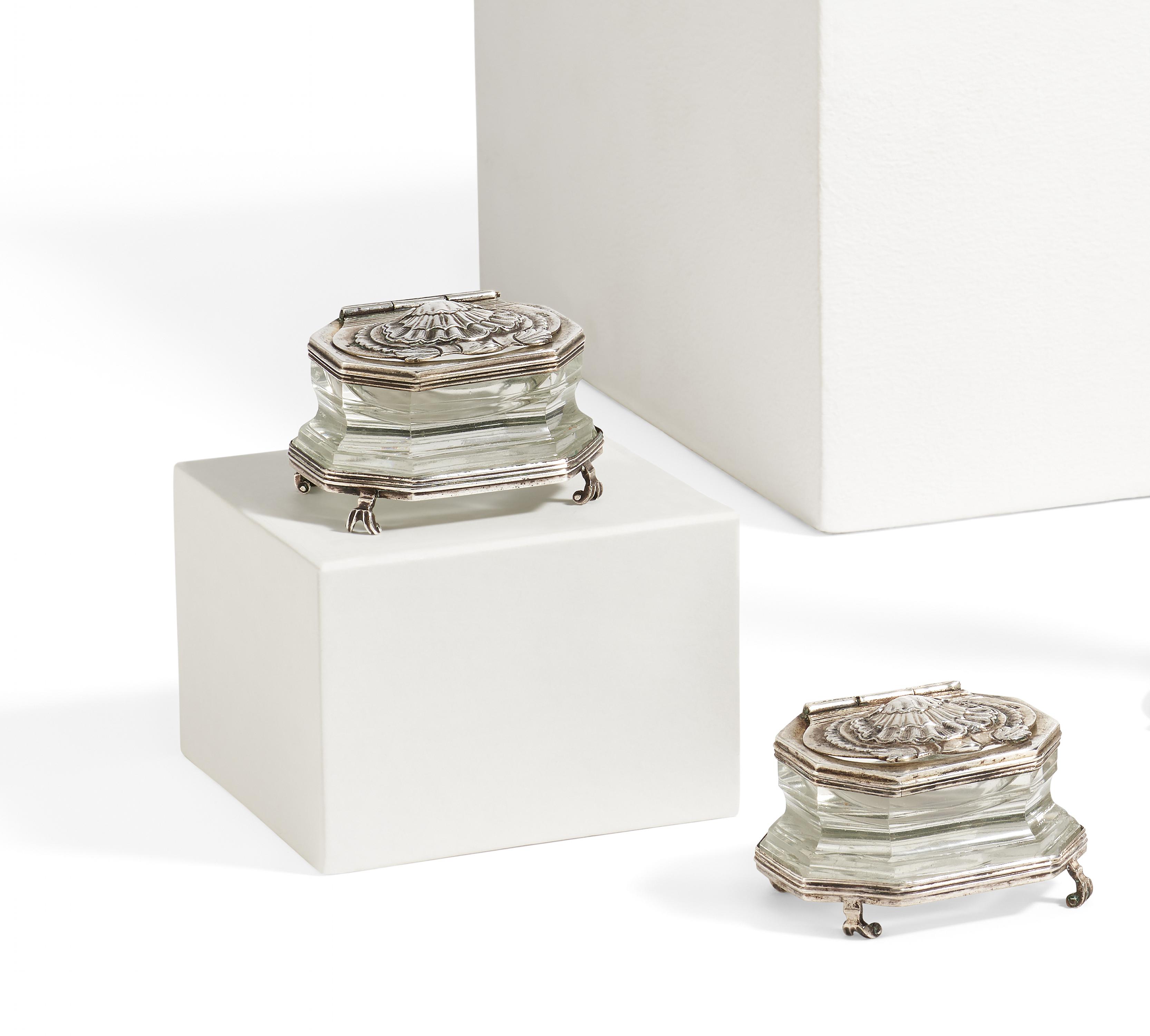 Technik: Silbermontierung mit Innenvergoldung. Farbloses Kristallglas.