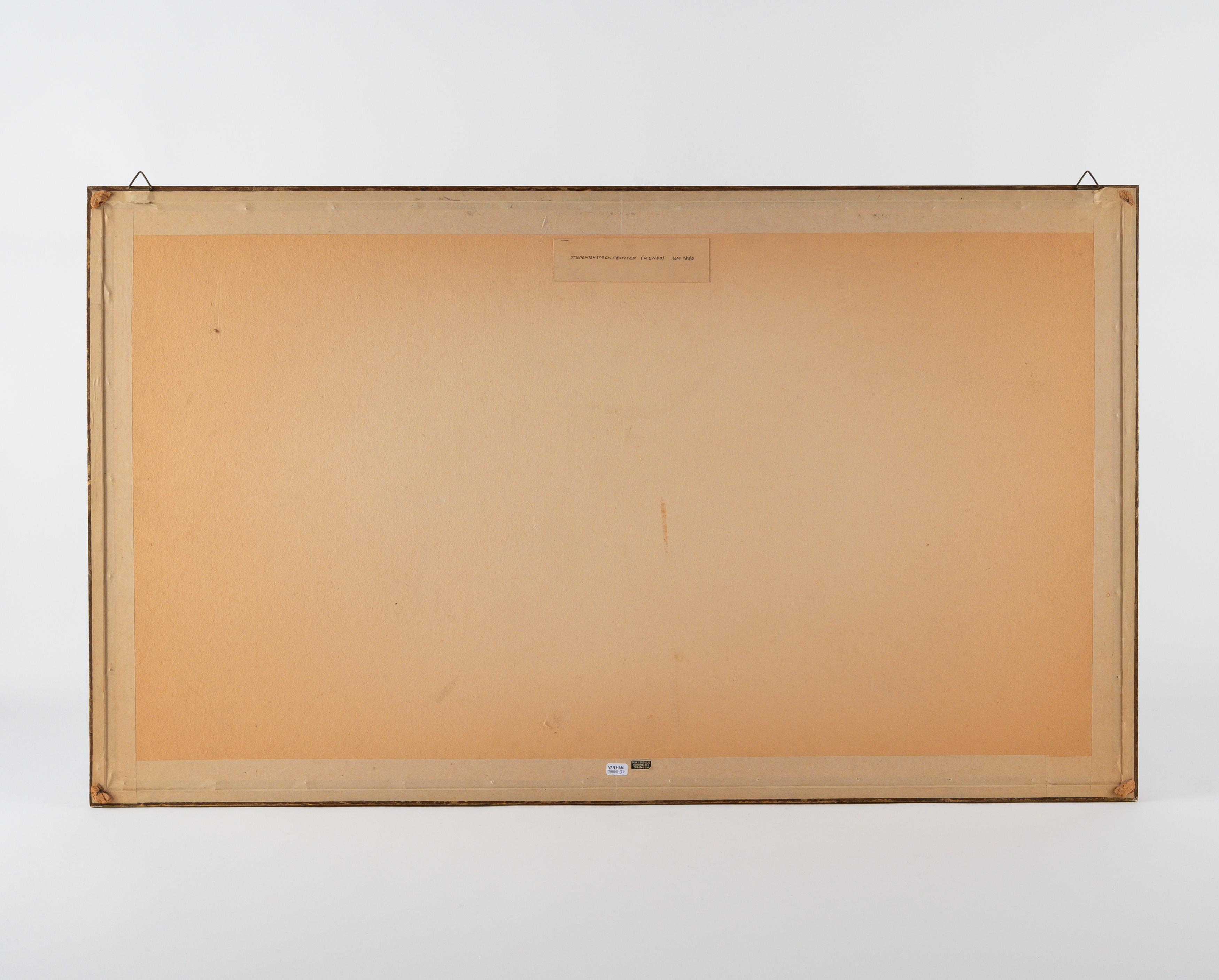 Titel: Farbholzschnitt mit Schlachtenszene als Triptychon.