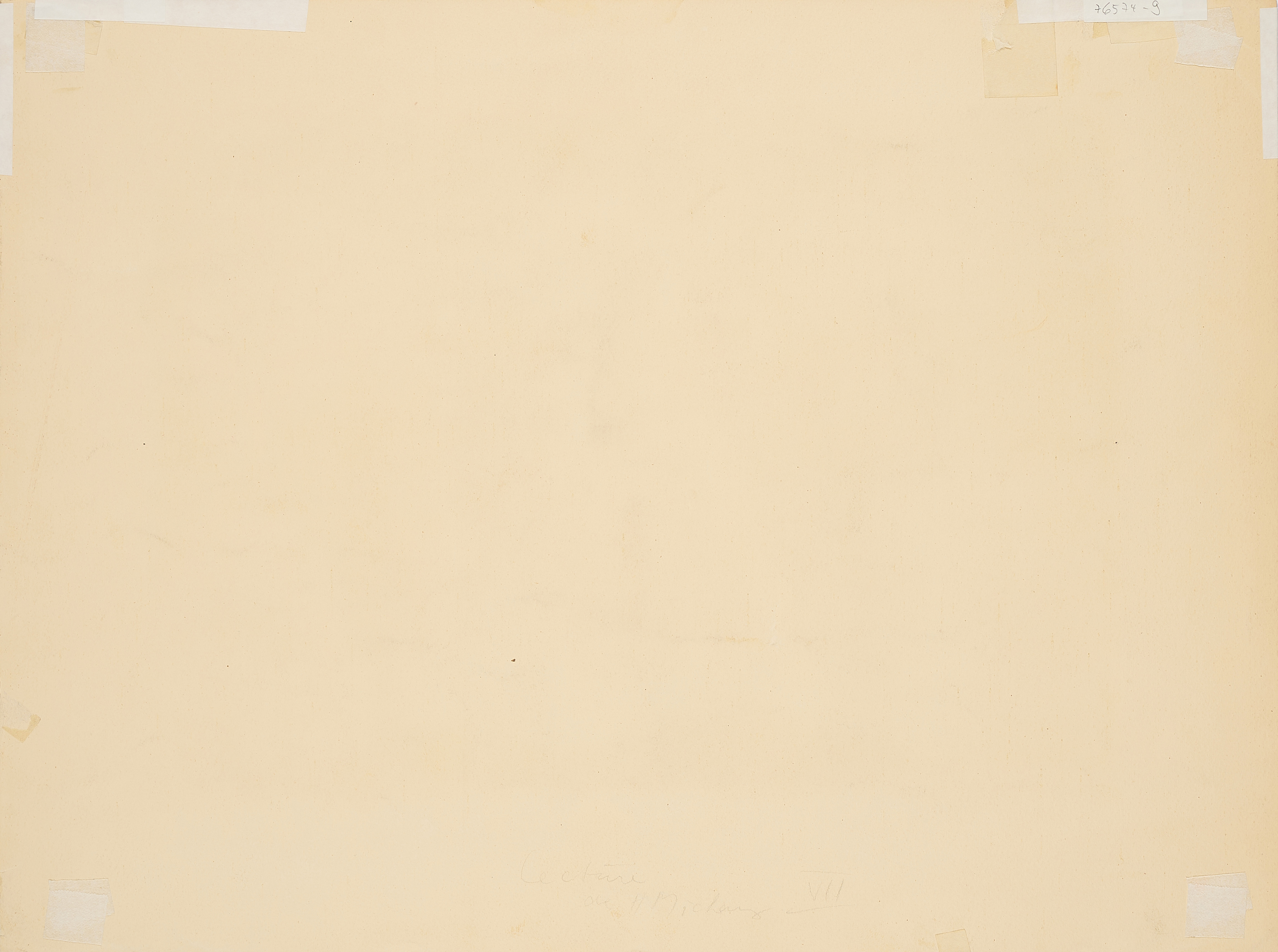 Leichte Knickspuren in der oberen linken Ecke. Leicht gebräunt in den Randbereichen. Minimal abgegriffene Kanten. Vereinzelt leichte Verschmutzungen an den Kanten. Zwei kleine Einrisse am rechten Rand unten (jeweils ca. 0,3cm). Verso Reste verschiedener alter Montierungen sowie minimal gebräunt und verschmutzt. Ansonsten guter Zustand.