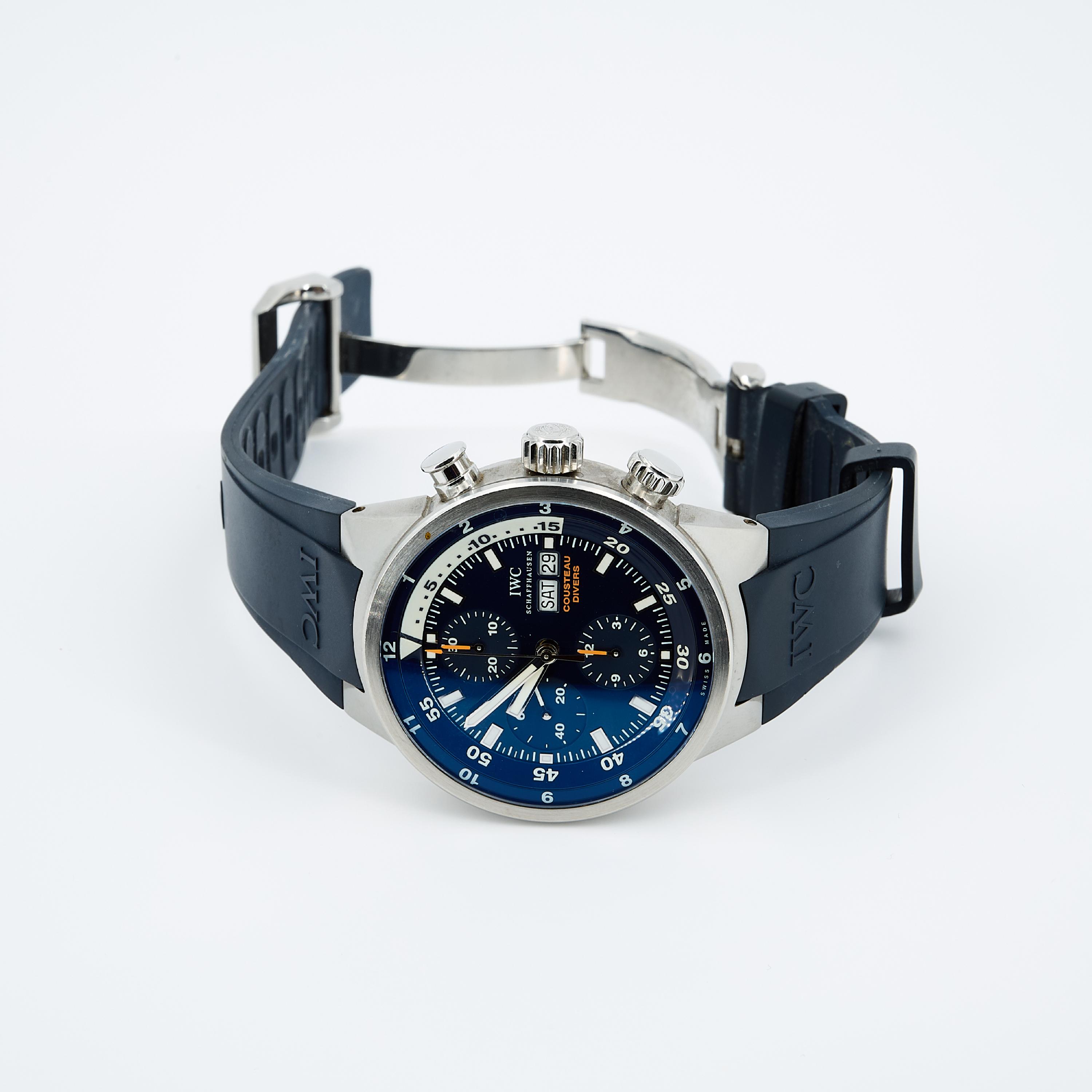 Gehäuse/Armband: Stahl, Kautschukarmband mit Faltschließe, Zffbl. schwarz, Zeiger und Indizes silbern, Leuchtmasse.